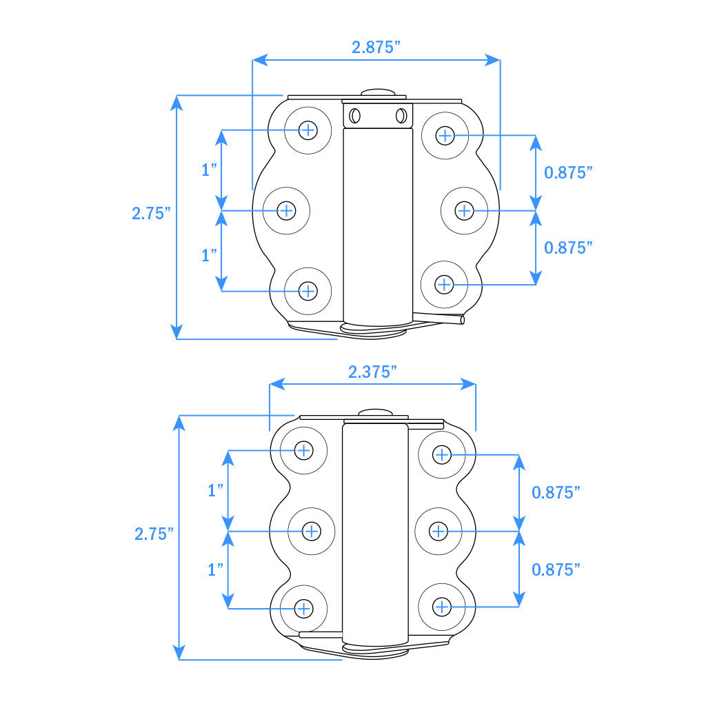 - 180 Door Opening Spring-loaded design allows the door to open fully while automatically closing for convenience.