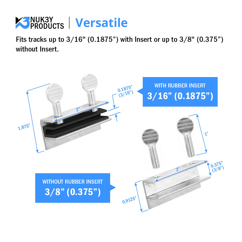 - "Fits Various Track Sizes - Compatible with window tracks up to 3/16"" wide with rubber insert, or 3/8"" wide without."